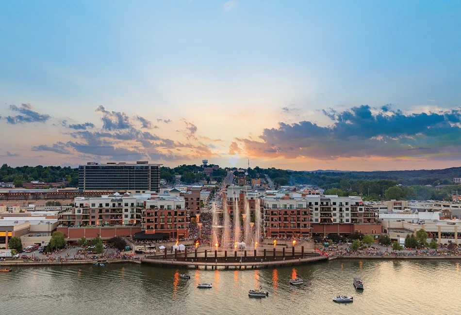 Stretching along the waterfront, Branson Landing brings together entertainment, recreation, and scenic beauty in one dynamic destination. The promenade’s open spaces and event areas host outdoor fitness events and community gatherings with the lake as a backdrop. Surrounded by shops, restaurants, and live entertainment, Branson Landing delivers a vibrant atmosphere where competition and celebration blend seamlessly along the shoreline.