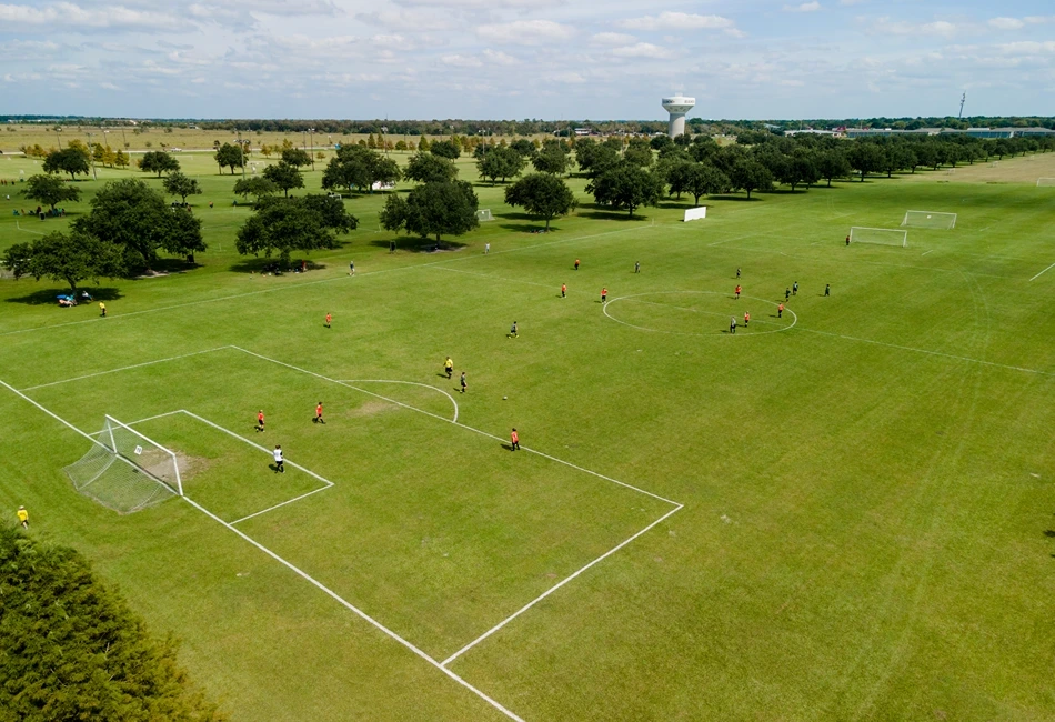 The impressive Cris Quinn Soccer Complex has 30 pristine multipurpose fields designed for soccer, 15 of which are for 11v11, along with several other sports. The indoor soccer field boasts a state-of-the-art artificial playing area measuring 85 x 185 feet, accommodating both youth and adult leagues. The facility features a lit scoreboard and a 30 x 50-foot warm-up area. Additionally, the climate-controlled indoor field enables play to continue irrespective of outdoor weather conditions.