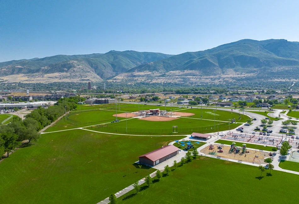 Farmington Regional Park offers stunning mountain views and a top-notch facility with a range of amenities. The park features eight outdoor pickleball courts, four baseball/softball fields, and four soccer fields. The indoor gymnasium spans over 32,000-square-feet and includes three full-size basketball courts that are also multi-use for basketball, volleyball, and pickleball. Additional amenities include restrooms, picnic tables, a playground, outdoor basketball courts, and a walking trail.