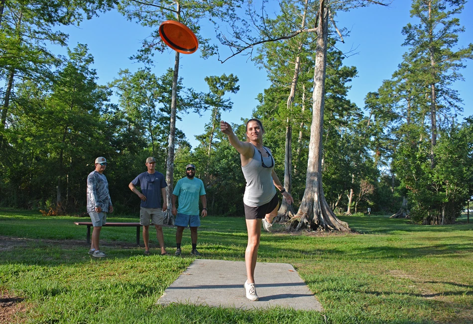 Parc des Familles sits on 610 acres of land that has been developed into a multifaceted complex. The park includes a sport quadplex comprised of four baseball fields with one field converting into a soccer/football field along with an 18-hole Disc Golf Course, which will host the Disc Golf Pro Tour in March 2026. There are batting cages, concessions and press box. The facility includes a boardwalk, nature trails, a pavilion, restrooms and picnic area, kayaking launch, and a mountain bike trail!.
