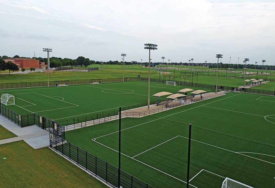 Russell Creek Park is the only park in North America that has seven cricket fields in a single location. The park is home to at least one big-purse international cricket tournament each year. The park features 20 full-size fields for soccer, lacrosse, rugby or football ranging from 70’ by 120’ or 75’ by 120’ fields along with two 50’ by 80’ fields. Ten of these fields are lighted and have shaded bleacherettes. It also sports four lighted baseball fields with bleacherettes.